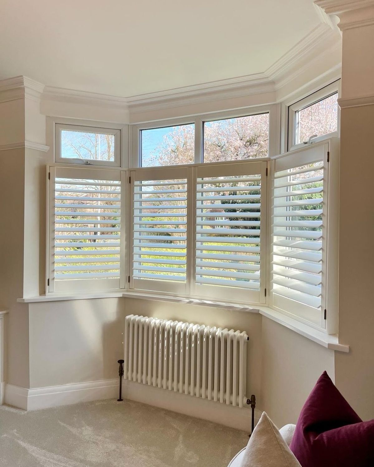 Shutters offer a lot of benefits. They look stylish from the inside and out, day and night. Curtains on the other hand offer a more traditional look and are left open during the day, leaving the room and its contents exposed. Shutters provide more privacy than curtains since outsiders don’t have any visibility inside your space. If you have a tier-on-tier shutter, you can open up the top panels during the day while maintaining privacy and security. Shutter louvres may also be adjusted to divert sunlight away from the furnishings while keeping the space bright, white and clean.